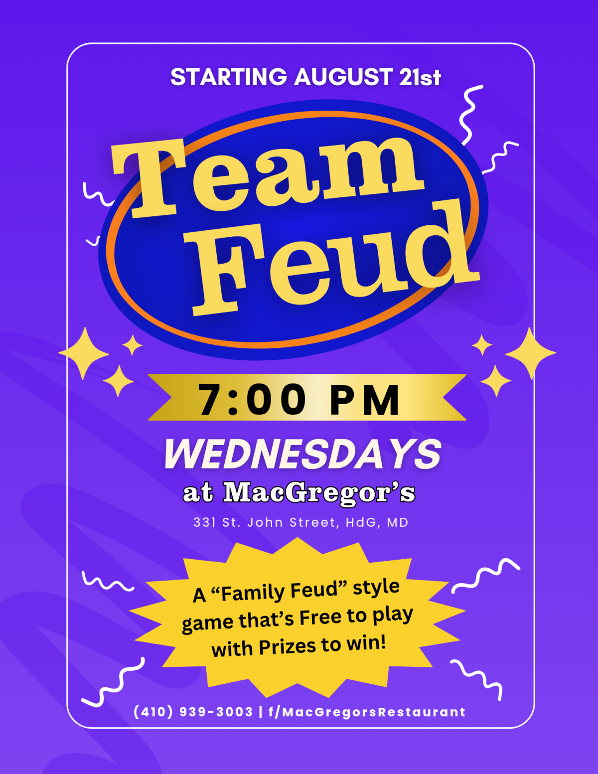 Join us every Wednesday for Team Feud! 7 pm in the bar.