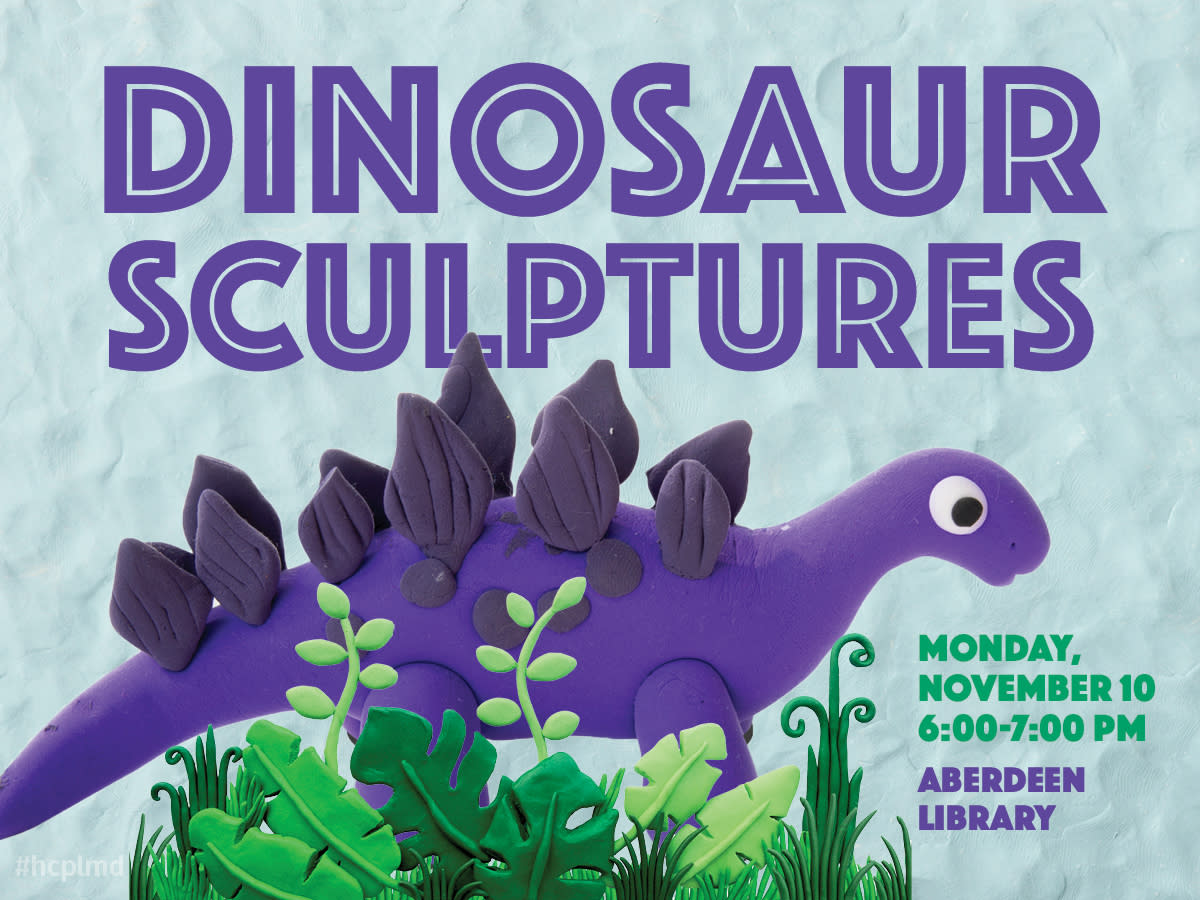 Harford County Public Library presents Dinosaur Sculptures November 10 from 6 to 7 p.m. at the Aberdeen Library, 21 Franklin Street. Children in grades K-5 are invited to celebrate Dinovember by creating their favorite dinosaur out of clay. Advanced registration is required at https://programs.hcplonline.org/event/13954333.