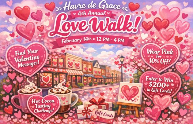 ❤️ Return to downtown Havre de Grace on 2.14 to find your message displayed in a shop window during the Love Walk!