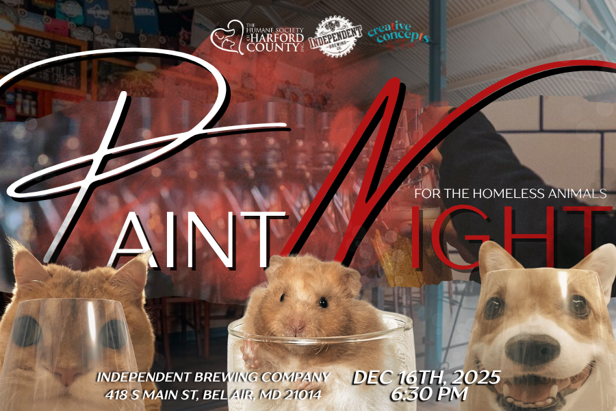 On Tuesday, December 16, 2025, at 6:30 PM, the Humane Society of Harford County will host a festive Paint Night at Independent Brewing Company, located at 418 S Main St, Bel Air, MD.