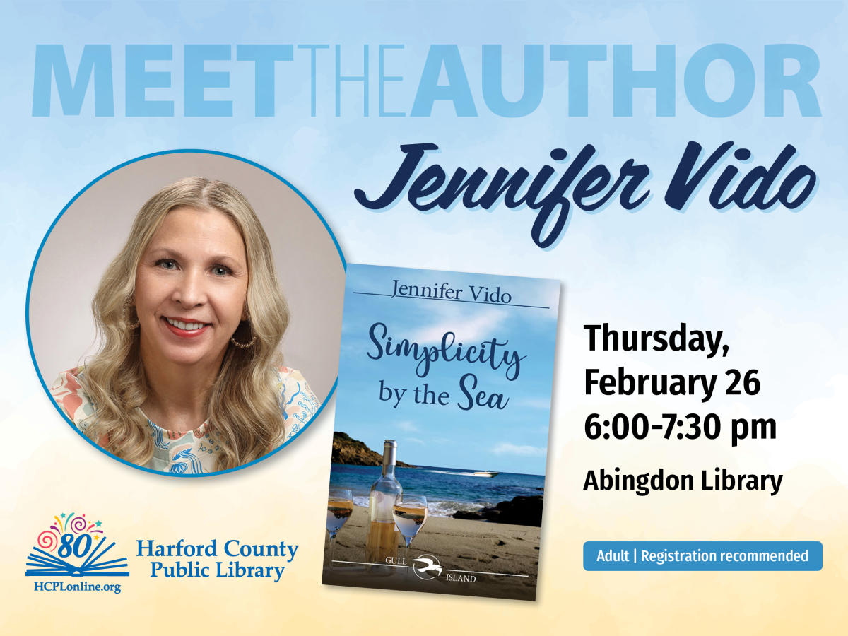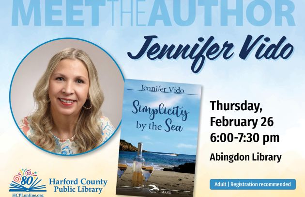 Harford County Public Library presents Meet the Author: Jennifer Vido on February 26 from 6 to 7:30 p.m. at the Abingdon Library, 2510 Tollgate Road. Join local author Jennifer Vido as she discusses her new book, “Simplicity by the Sea," the third and final title in her award-winning Gull Island series. Enjoy an evening of conversation, coastal inspiration and community as she shares the heartwarming conclusion to her beloved Lowcountry romance series. Vido will be in conversation with The Honorable Susan Hazlett. A Q&A session will conclude the event, followed by a book signing and photo opportunity. Copies of "Simplicity by the Sea" will be available for purchase. Advanced registration is recommended at https://programs.hcplonline.org/event/14936716.