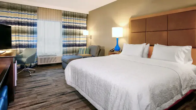 Located at the heart of the I-95 corridor, Hampton Inn & Suites by Hilton Baltimore/Aberdeen is 30 miles north of Baltimore and a short drive from the Defense contractors’ offices in the GATE. Business travelers will enjoy our close proximity to Aberdeen Proving Ground (APG), the Army Research Labs (ARL), C4ISR and the Chemical Biological Center (ECBC) in Edgewood. We are also minutes from Ripken Stadium, Cedar Lane and Harford Community College.Our hotel provides thoughtful amenities to make every stay a success. Start each morning with free, hot breakfast, or grab one of Hampton’s On The Run™ Breakfast Bags available Monday through Friday. Take a refreshing dip in our heated indoor pool or work out with a range of cardiovascular machines in the fitness center. Wrap up last minute projects in the fully equipped business center or host a meeting in our 912 sq. ft. of flexible meeting space. If you’ve forgotten a travel essential or need a quick snack, our Suite Shop is open 24 hours a day for your convenience.All of our warm, comfortable guest rooms and suites include a mini-refrigerator and free WiFi. Settle in each night and enjoy a peaceful night’s sleep in our clean and fresh Hampton beds®. Choose a room with one king-sized or two queen-sized beds or upgrade to a suite and enjoy extra space and separate sleeping and living areas.