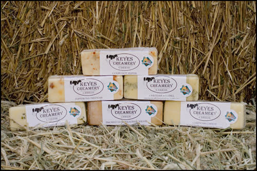 Keyes Creamery Cheese is made from our pure-raw milk and meets the highest quality standards. Batches of milk from our dairy are custom-processed in a small, Amish-owned plant in Pennsylvania. The cheese is allowed to go through a 60-day natural pasteurization period to enhance the natural flavor. We use only milk produced during the grazing season; this further enhances the flavor and color of our cheese.